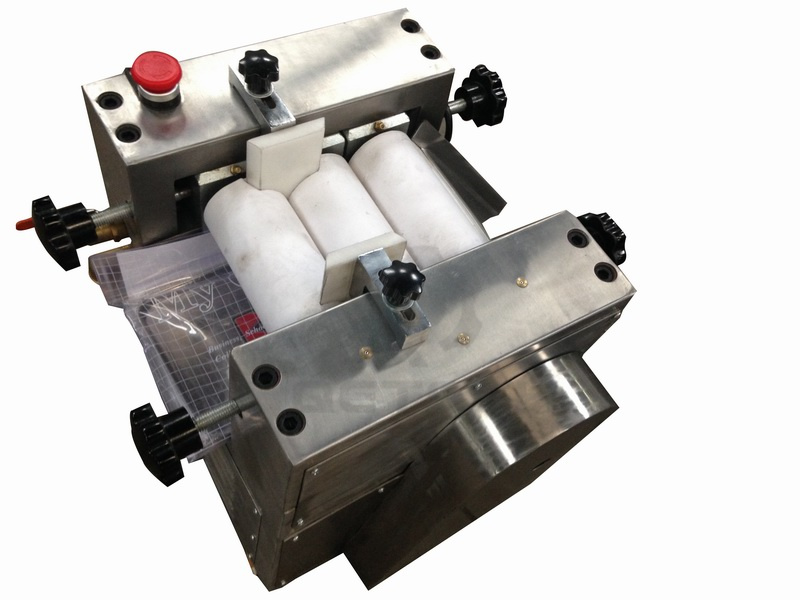 该机通过机器水平方向排列的三根辊筒的表面相互挤轧及不同速度的摩擦而达到研磨作用,研磨物料一般只需研磨二次就可以达到要求,难研磨物料要研磨多次,方能达到要求,加工细度一般可达到3-18um左右(用细度板测定)。